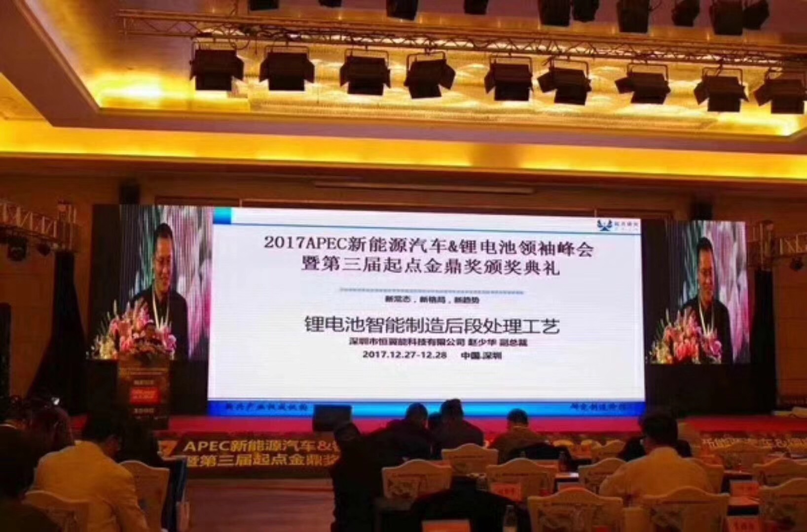 On December 27-28, "2017 APEC New Energy Automobile & Lithium-ion Battery Leadership Summit, the 3rd Qidian Golden Tripod Award Ceremony" jointly hosted by Qidian Study, Lithium Big Data, and Qidian Electric Network was held in Julong Hall of Crowne Plaza Shenzhen Longgang City Centre in Shenzhen City. More than 1,000 elites from automobile enterprise, core components enterprises, and parts enterprises, gathered together to discuss the new cooperation mode, in order to strengthen further integration of new energy automobile industrial chain and promote healthy development of the industry.